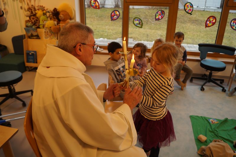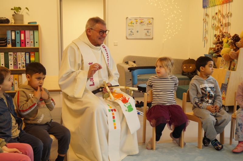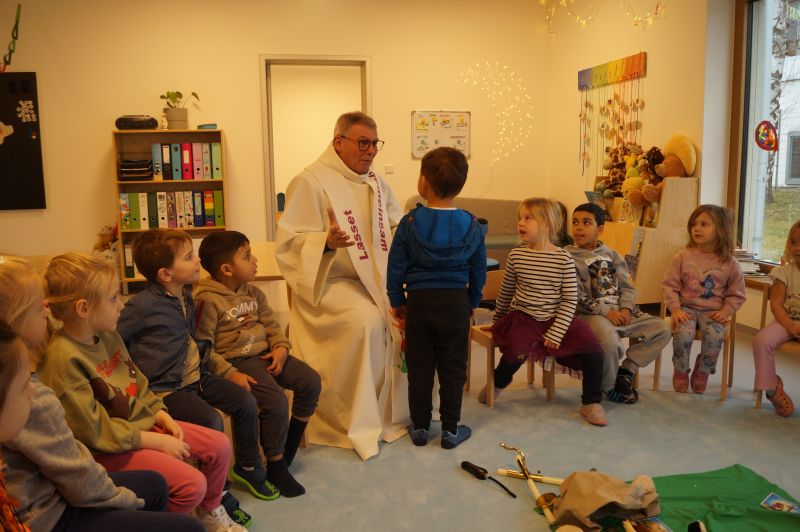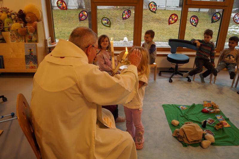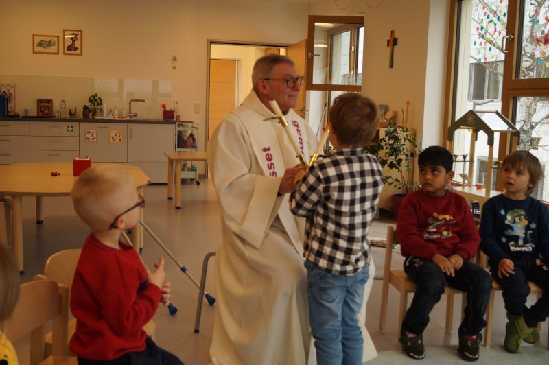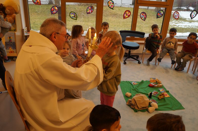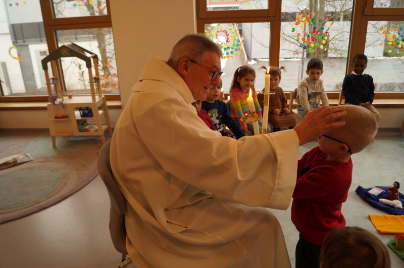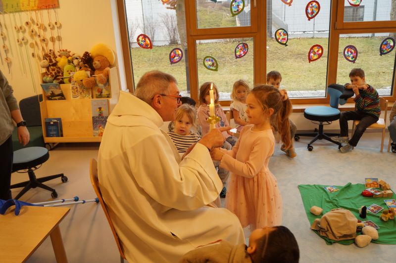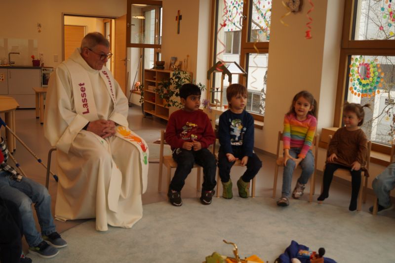 Stadtpfarrer Eichinger kommt zu uns und spendet uns den Blasiussegen
