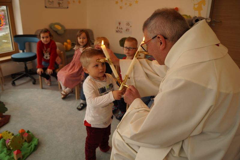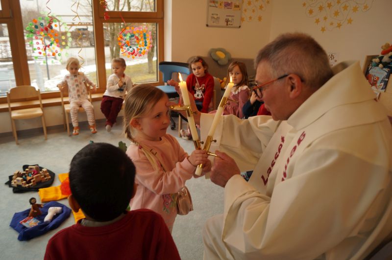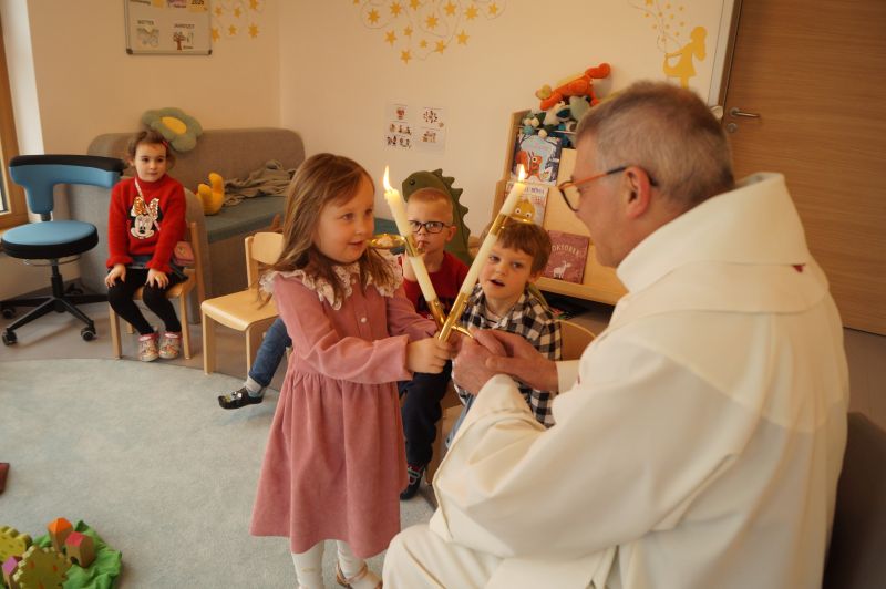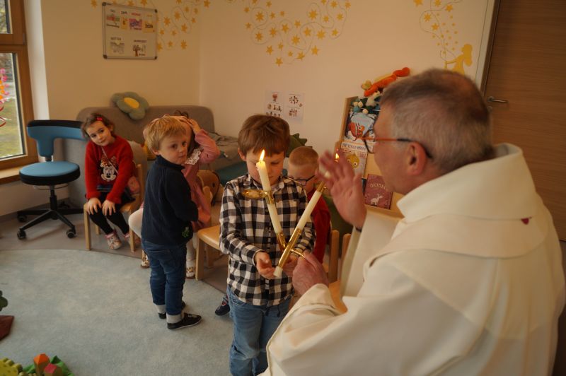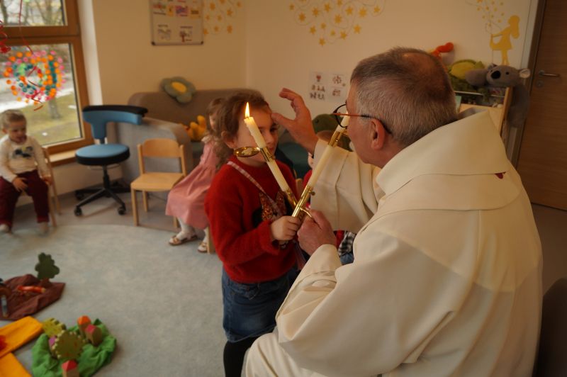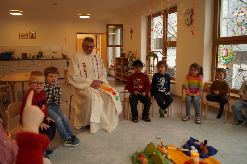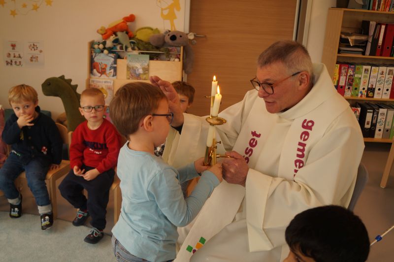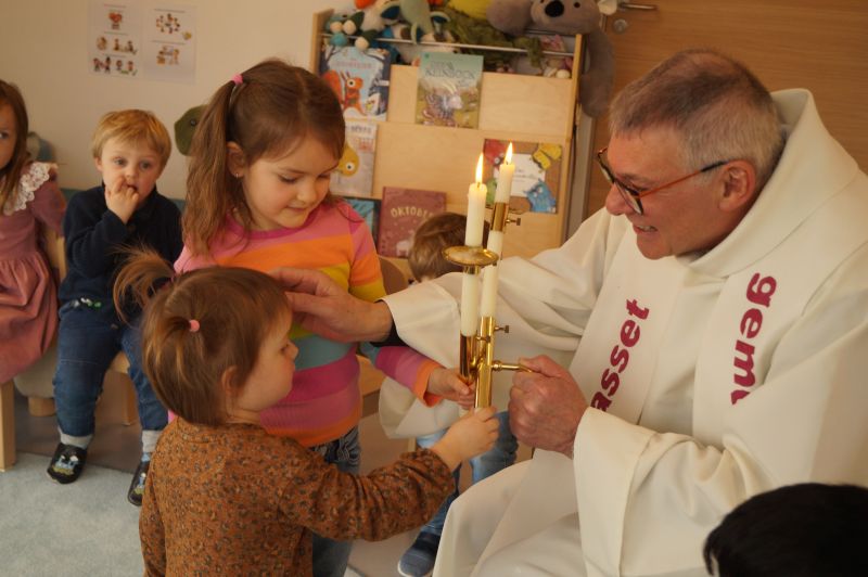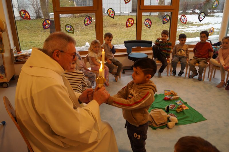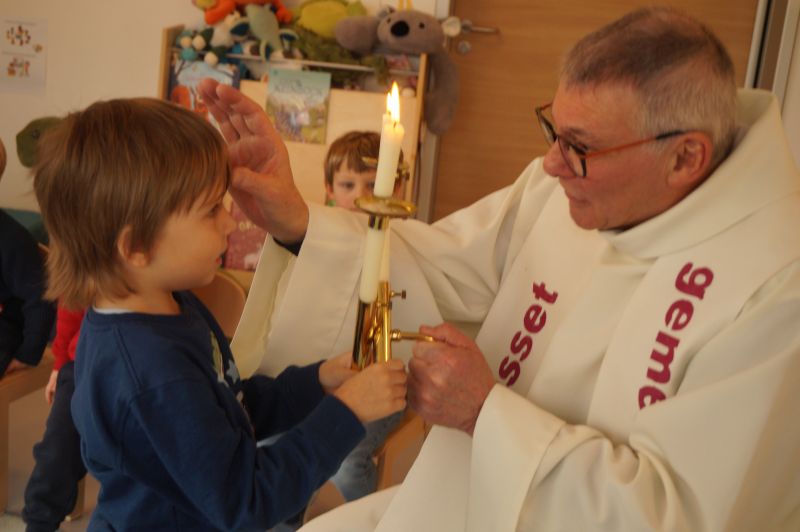 Stadtpfarrer Eichinger kommt zu uns und spendet uns den Blasiussegen